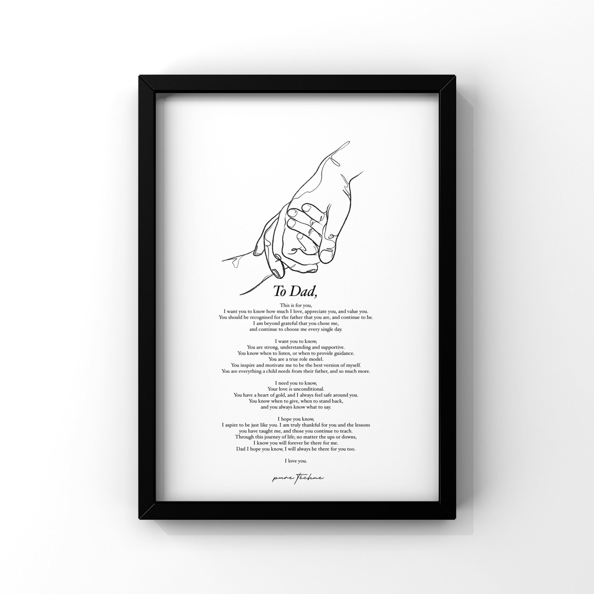 Introducing our collection of meaningful art prints for dads - the perfect way to express your love and appreciation for the special man in your life. Each print is uniquely designed and features powerful and thought-provoking words that are meant to inspire and uplift fathers. They are perfect for any room in the house, and make a thoughtful and unique gift for new dads, dads-to-be or even experienced dads. Whether you're looking to remind a dad of his strength, to encourage him to continue to follow his dreams, or to simply let him know how much you care, our collection has something for every dad. Each print is made with high-quality materials and is printed with fade-resistant inks to ensure that your special message will last a lifetime. P
