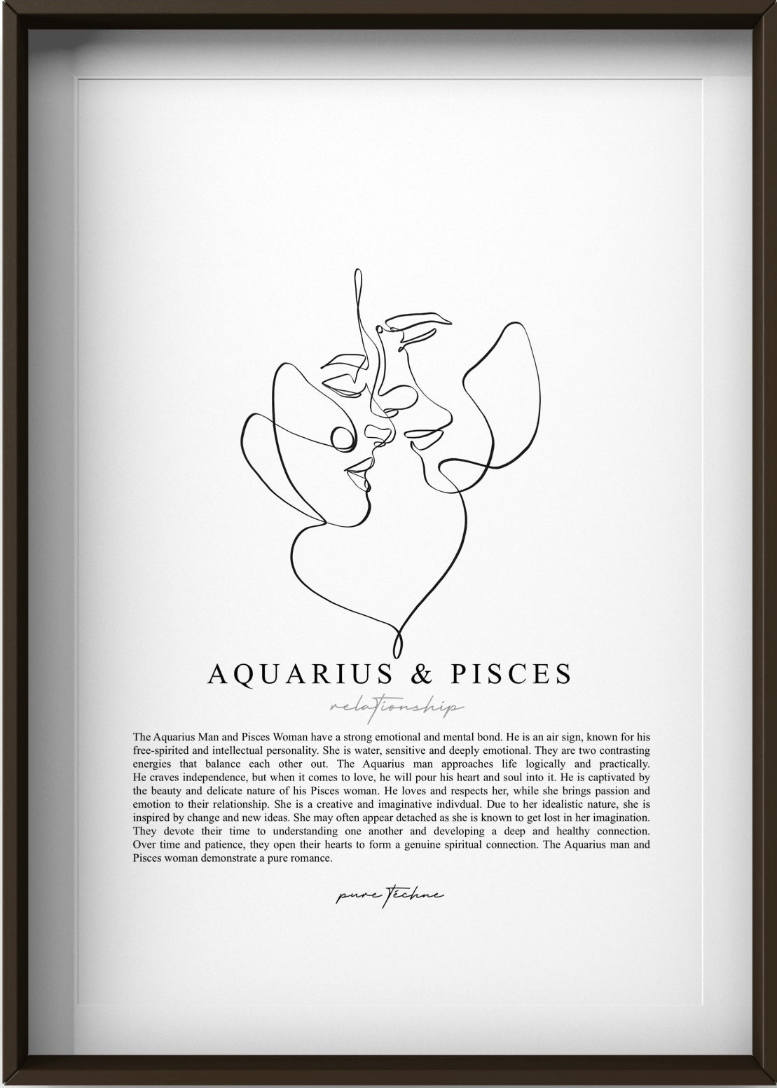 An authentic art print specially created for couples, expressing the compatibility of the two star signs. A perfect gift for a lovely couple or for you and your partner.