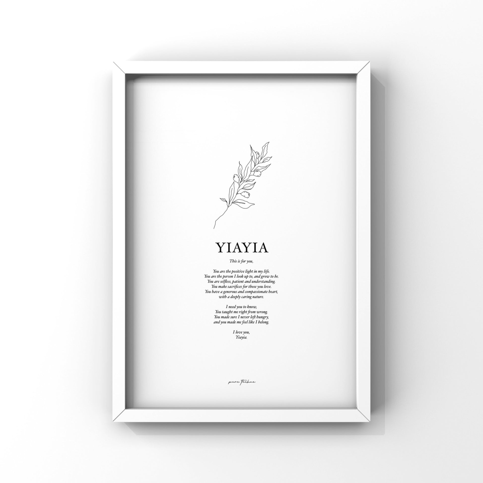 This print has been created for all the beautiful Yiayia's out there! Spoil them with a simple art piece that expresses how much you love and cherish them.