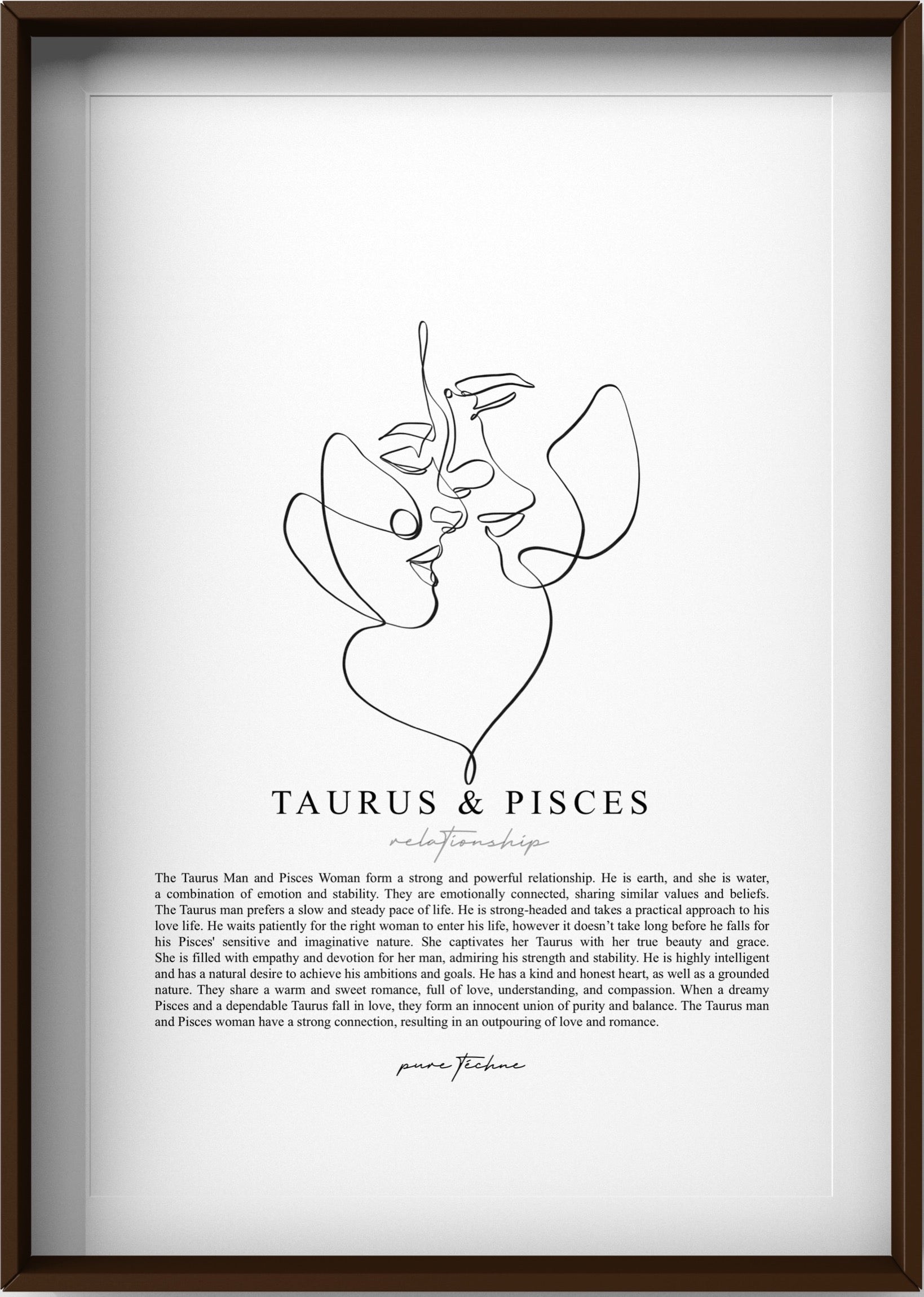 An authentic art print specially created for couples, expressing the compatibility of the two star signs. A perfect gift for a lovely couple or for you and your partner.