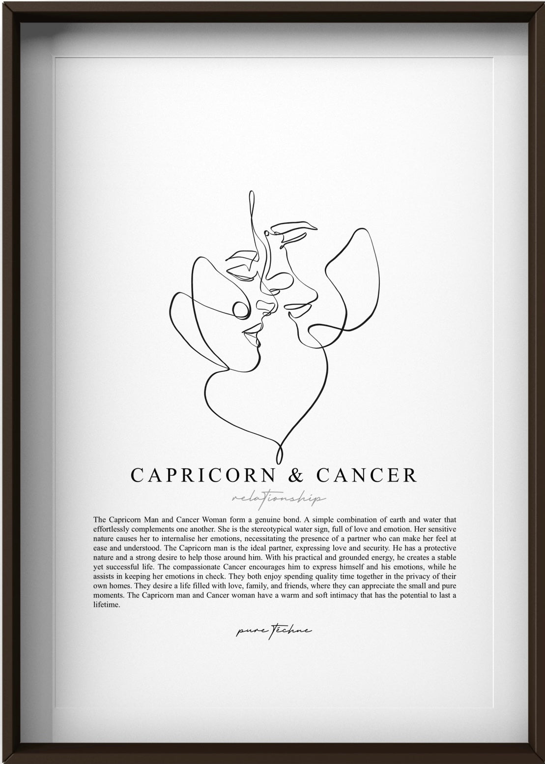 An authentic art print specially created for couples, expressing the compatibility of the two star signs. A perfect gift for a lovely couple or for you and your partner.