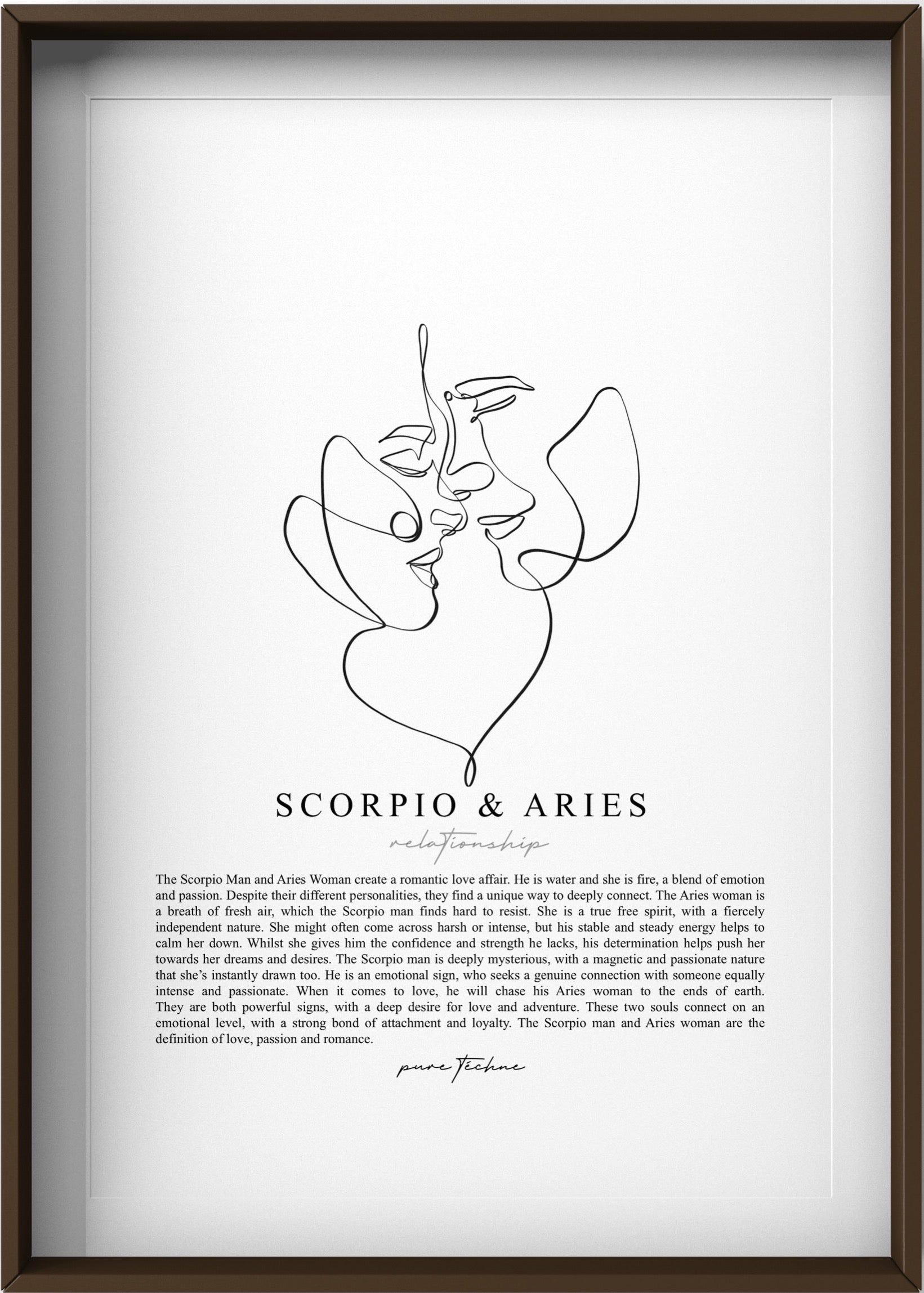 An authentic art print specially created for couples, expressing the compatibility of the two star signs. A perfect gift for a lovely couple or for you and your partner.