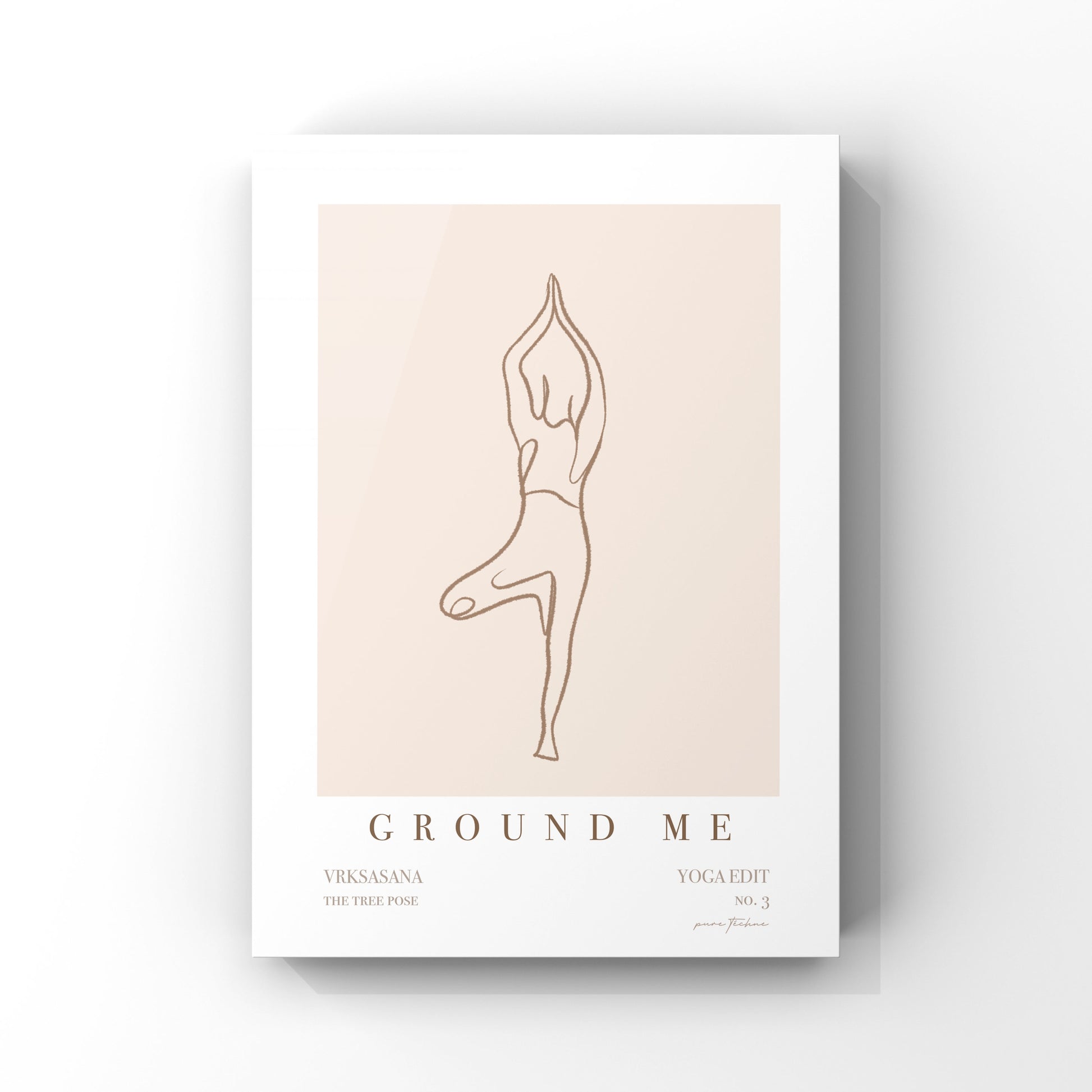 The "Ground Me" poster beautifully illustrates the Tree Pose, with intricate details that capture the essence of this powerful posture. The artwork is designed to promote a sense of grounding and stability, helping to create a sense of balance and harmony in daily life.